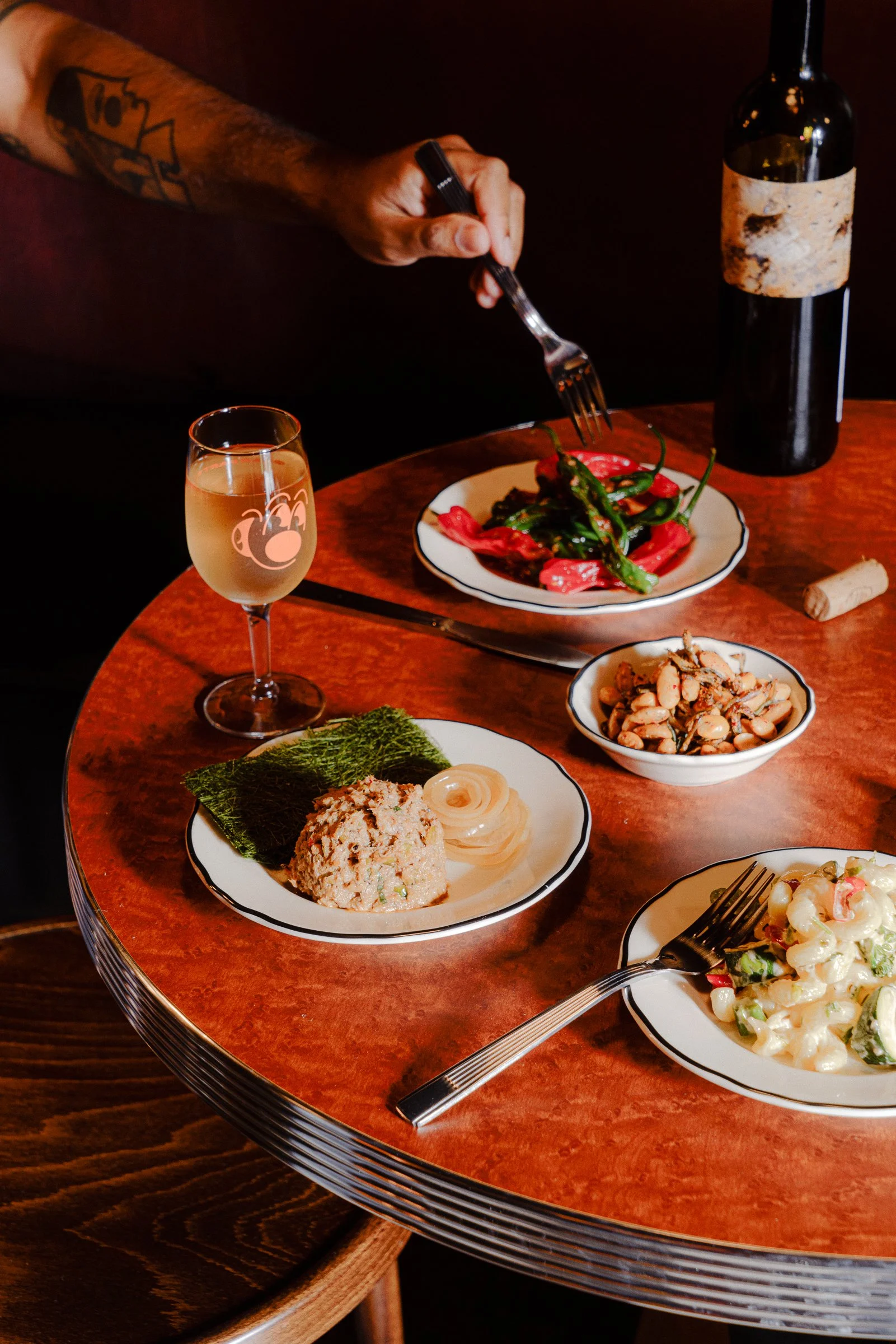 Together we took over an abandoned dive bar where we all spent our early 20’s; We strategically repaired what worked and replaced what didn’t. Studio Anand Sheth assembled a team of favorites, including millworker extraordinaire Brandt Hewitt (Medium Small) and go-to hospitality contractor Cookline Construction. We sourced vintage light fixtures from eBay and Stuff (a vintage store around the corner), power-clashed patterns in the flooring and restrooms, and enlisted Meryl Pataky to create the perfectly nostalgic neon pieces above the bar and in the window.