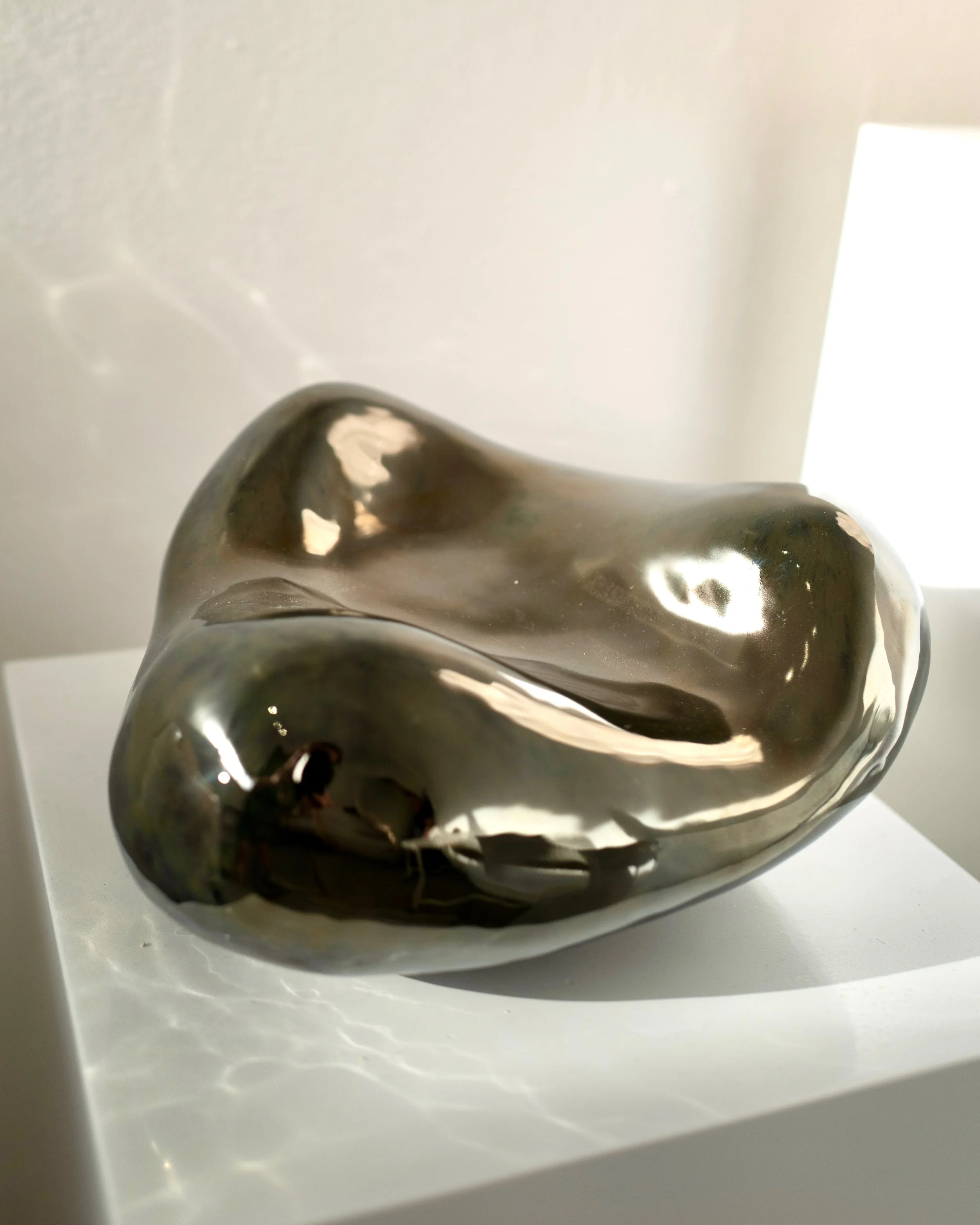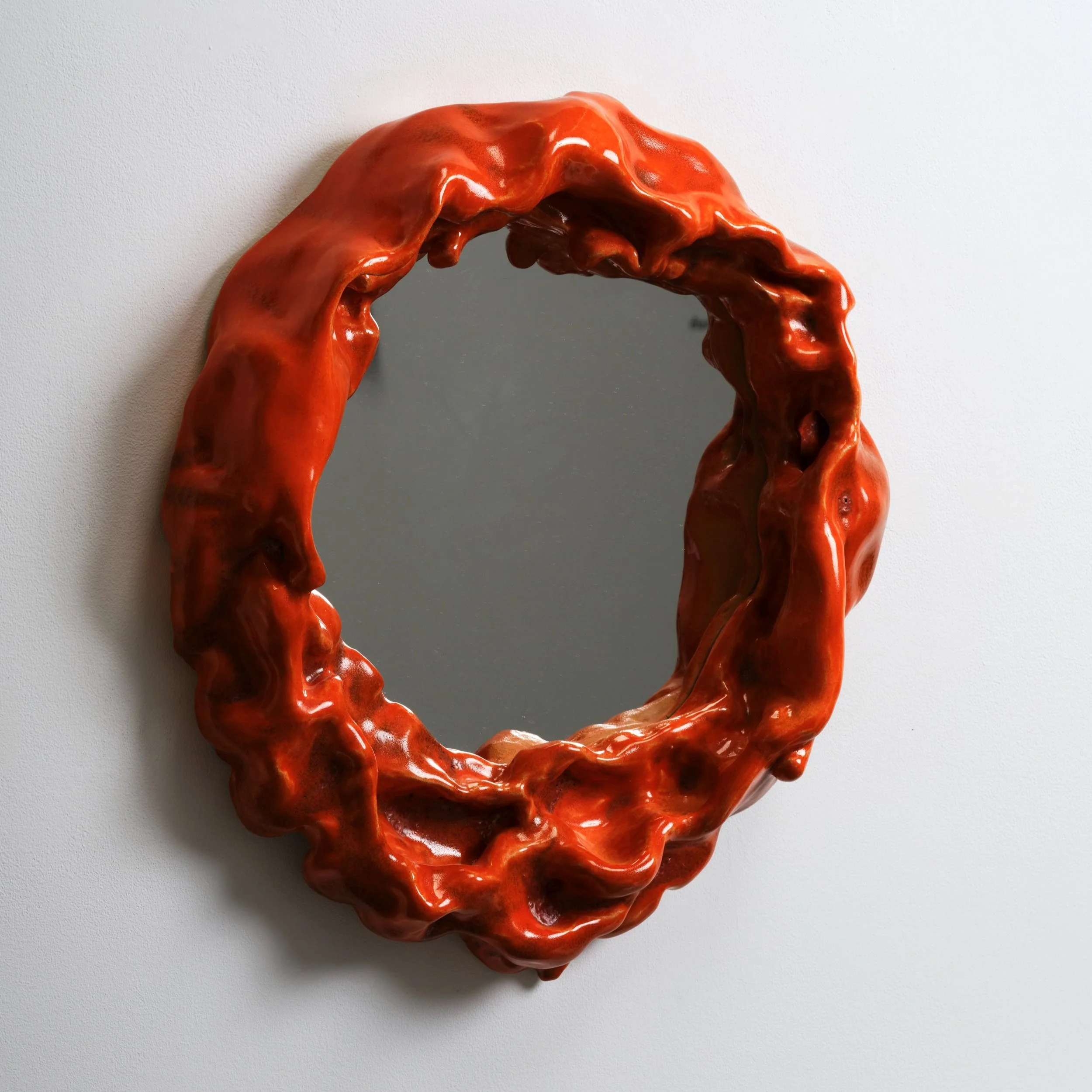 The exhibition’s title, Closer Than They Appear, underscores both the laws of physics and metaphorically how reflections might inform us about proximity — of intimacy made strange, enacting a kind of call-and-response with the viewer’s self-imaging. This exhibition draws upon the spatial and psychological dimensions of the mirror, what Lacan famously termed the méconnaissance of the mirror stage, to explore how reflection can mislead, multiply, or undo perception altogether. In this context, reflection becomes sculptural, spatial, and social — shaped by the histories embedded in our physicality and the politics of perception.